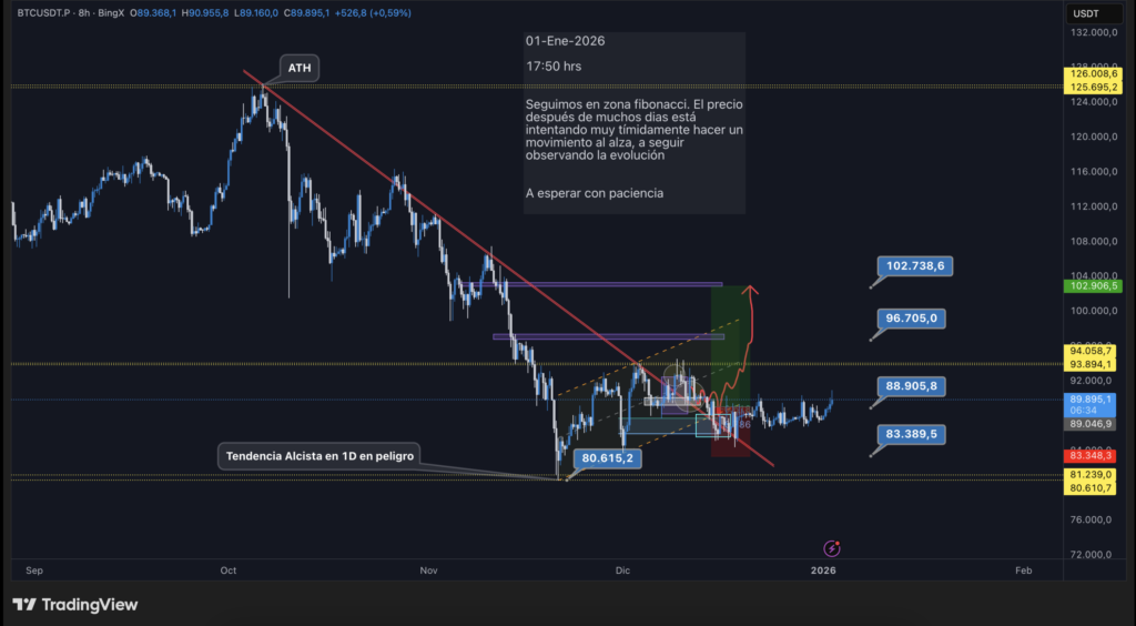 Seguimos en zona fibonacci. El precio después de muchos dias está intentando muy tímidamente hacer un movimiento al alza, a seguir observando la evolución.