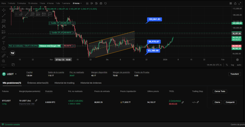 Al consierar esto un rebote y no un movimiento alcista como tal, tenemos que ser precavidos por lo tanto, ahora mismo he colocado el precio en punto de entrada o Break Even para no perder en caso de que el precio se desplome.