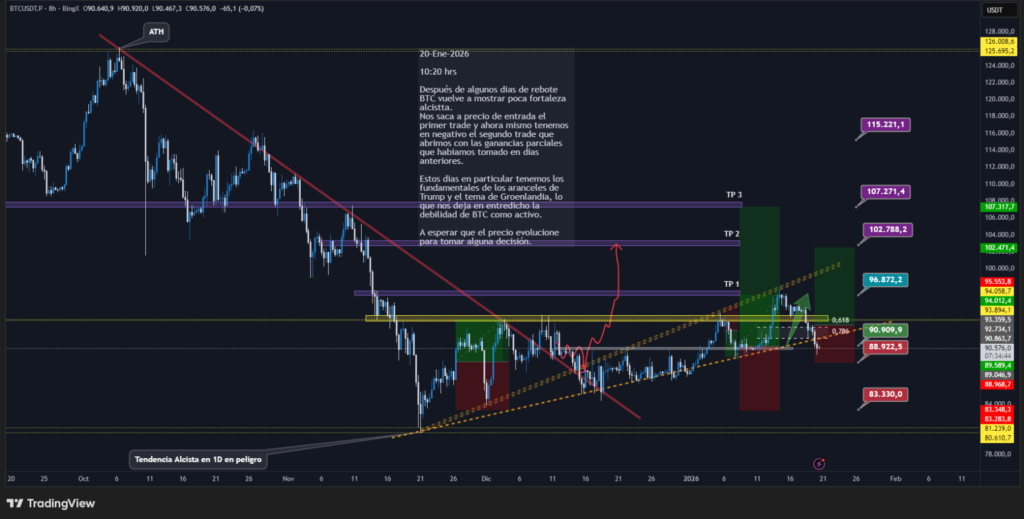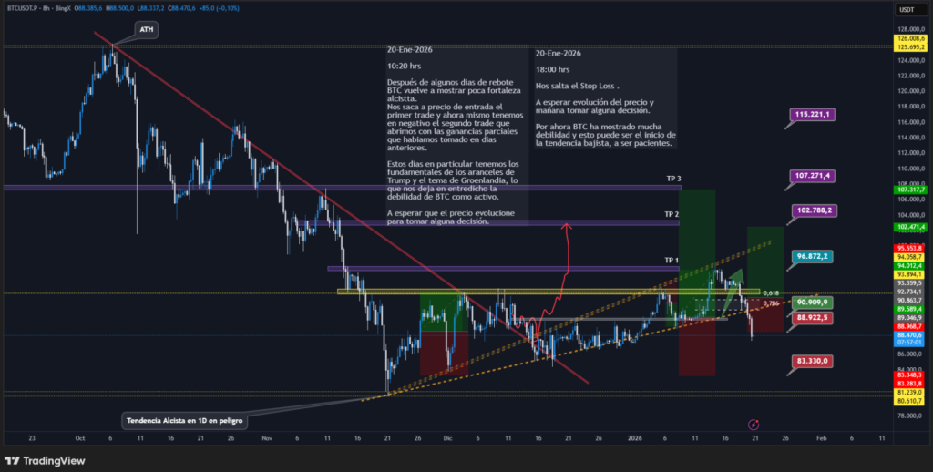 Estos dias en particular tenemos los fundamentales de los aranceles de Trump y el tema de Groenlandia, lo que nos deja en entredicho la debilidad de BTC como activo.