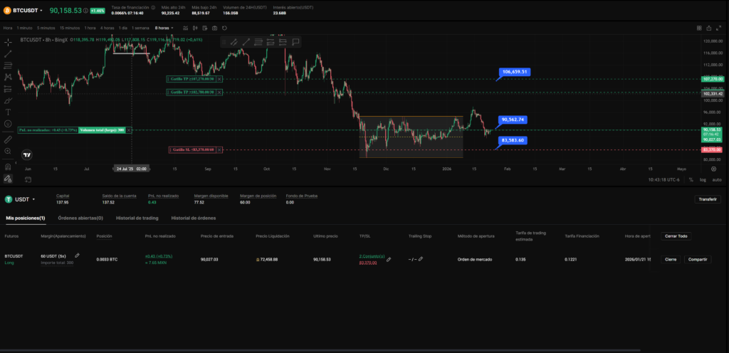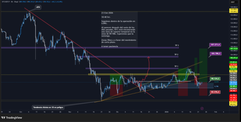 Al parecer después del susto de los días pasados, BTC está encontrando una zona de soporte temporal en la zona de 89-90k. Esperemos que la sostenga.