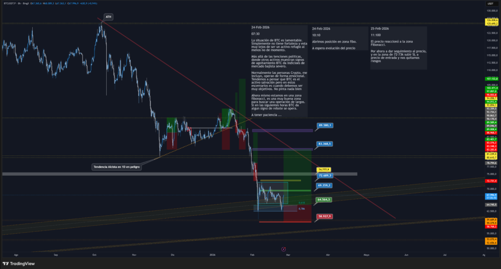 Por ahora a dar seguimiento al precio, y en la zona de 72-73k subir SL a precio de entrada y nos quitamos riesgos